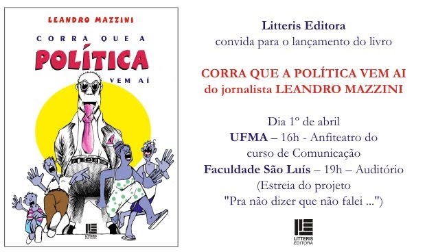 Editor da coluna Informe JB, do Jornal do Brasil, e apresentador da Rede Vida, Leandro Mazzini vem a São Luís no próximo dia 1º de abril para autografar, na Faculdade São Luís, o livro Corra que a Política vem Aí, obra que tem como prefaciador o jornalista e escritor Carlos Heitor Cury, membro da Academia Brasileira de Letras.